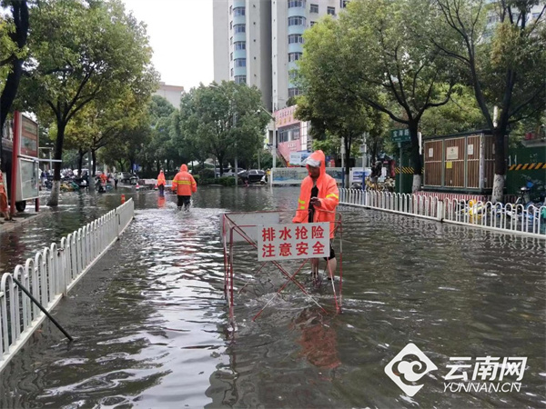 受臺(tái)風(fēng)“杜蘇芮”影響,7月27日夜間至28日清晨昆明出現(xiàn)大到暴雨,局部大暴雨天氣,截至28日16時(shí),有12個(gè)雨量站雨量達(dá)到100毫米以上,有52個(gè)雨量站雨量達(dá)到50毫米以上。昆明市氣象臺(tái)于28日2時(shí)55分發(fā)布暴雨Ⅳ級(jí)預(yù)警,7時(shí)25分升級(jí)發(fā)布暴雨Ⅲ級(jí)預(yù)警。昆明市委、市政府領(lǐng)導(dǎo)高度關(guān)注汛情雨情,要求各防汛部門加強(qiáng)值守,及時(shí)處置,確保城市運(yùn)行安全和人民生命財(cái)產(chǎn)安全。目前主城區(qū)淹水點(diǎn)已完成處置,交通斷交點(diǎn)已恢復(fù)正常。