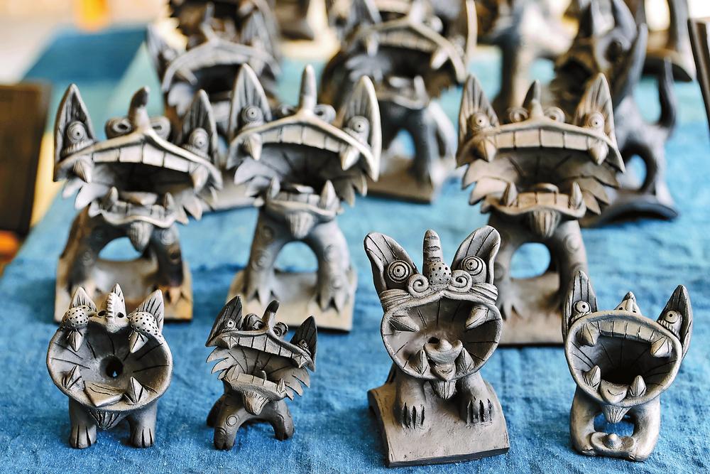 “黑如漆、聲如磬、色澤溫潤(rùn)光亮,經(jīng)由無(wú)釉無(wú)彩碳化窯變的古老工藝燒制而成的劍川黑陶工藝品瓦貓,有著質(zhì)樸敦厚之美?!痹趧Υh甸南鎮(zhèn)白族土陶傳習(xí)所,劍川白族土陶制作技藝州級(jí)傳承人董志明正在向游客們介紹最具代表性的劍川黑陶工藝品——瓦貓。