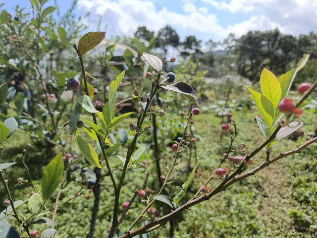 據(jù)悉,藍莓成熟果實呈圓球形,暗藍色,味道酸甜可口,營養(yǎng)豐富,具有軟化血管、保護視力等功效。一般花期為6至7月,果期為8至9月,但受地理、氣候等因素影響,在德黨轄區(qū)種植的藍莓花期、果期有所提前。