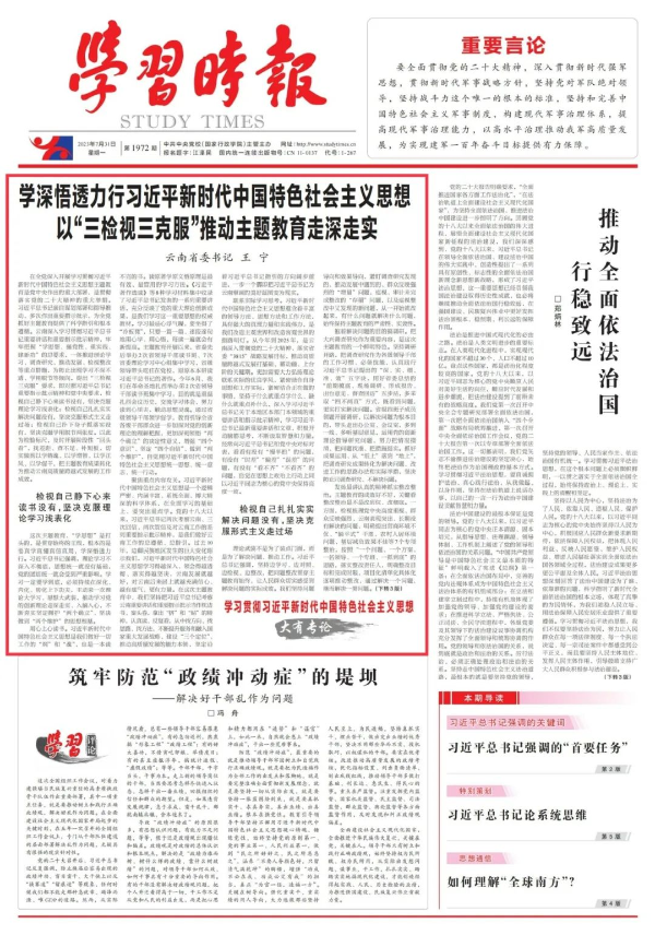 聯(lián)系實(shí)際學(xué)習(xí)思考。習(xí)近平新時代中國特色社會主義思想蘊(yùn)含著豐富的領(lǐng)導(dǎo)方法、思想方法和工作方法,具有強(qiáng)大的真理力量和實(shí)踐偉力,是我們改造主觀世界和改造客觀世界的指路明燈。從今年到2025年,是云南深入貫徹黨的二十大精神,落實(shí)省委“3815”戰(zhàn)略發(fā)展目標(biāo),推動高質(zhì)量跨越式發(fā)展打基礎(chǔ)、蓄動能、上臺階的關(guān)鍵期。更加需要大力弘揚(yáng)理論聯(lián)系實(shí)際的優(yōu)良學(xué)風(fēng),緊密結(jié)合自身思想和工作實(shí)際,緊密結(jié)合正在做的事情,堅持干什么就重點(diǎn)學(xué)什么、缺什么就重點(diǎn)補(bǔ)什么,深入學(xué)習(xí)習(xí)近平總書記關(guān)于本地區(qū)本部門本領(lǐng)域的重要講話和指示批示精神,學(xué)習(xí)習(xí)近平總書記最新重要講話和文章,積極開動腦筋思考,不斷汲取智慧和力量。經(jīng)常向習(xí)近平總書記和黨中央對標(biāo)對表,看看有沒有“慢半拍”的問題,有沒有“時差”“偏差”“誤差”的問題,有沒有“看不齊”“不看齊”的問題,自覺在思想上政治上行動上同以習(xí)近平同志為核心的黨中央保持高度一致。