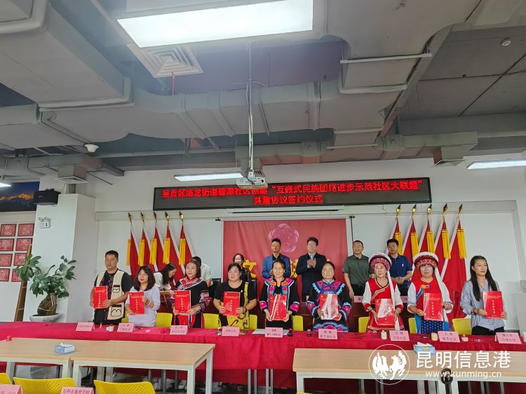 昆明信息港訊 記者段佳琪 通訊員李麗娟 近日,昆明市呈貢區(qū)洛龍街道碧潭社區(qū)舉行“互嵌式民族團(tuán)結(jié)進(jìn)步示范社區(qū)大聯(lián)盟”創(chuàng)建活動,與云南省37個州市社區(qū)簽訂創(chuàng)建“互嵌式民族團(tuán)結(jié)進(jìn)步示范社區(qū)大聯(lián)盟”共建協(xié)議。