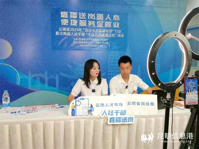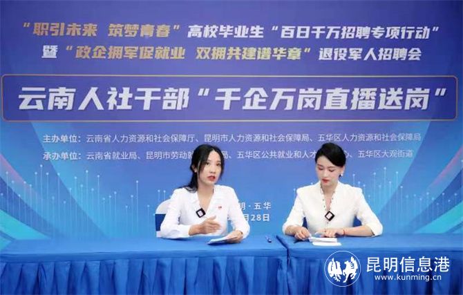 昆明信息港訊 記者江楓 7月28日,云南省人力資源和社會(huì)保障廳、昆明市人力資源和社會(huì)保障局、五華區(qū)人力資源和社會(huì)保障局聯(lián)合舉辦2023年“職引未來(lái) 筑夢(mèng)青春”高校畢業(yè)生“百日千萬(wàn)招聘專項(xiàng)行動(dòng)”暨“政企擁軍促就業(yè) 雙擁共建譜華章”退役軍人招聘會(huì),同步開展云南省人社干部“千企萬(wàn)崗直播送崗”活動(dòng)。