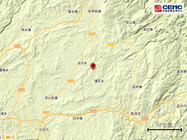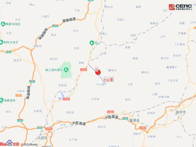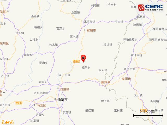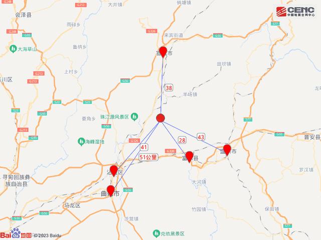周邊縣城:震中距富源縣28公里、距宣威市38公里、距沾益區(qū)41公里、距貴州盤州市43公里、距麒麟?yún)^(qū)51公里,距曲靖市52公里,距昆明市167公里。