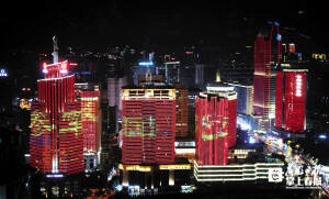 昆明華一廣場周邊樓宇外墻燈光秀開展征兵宣傳。