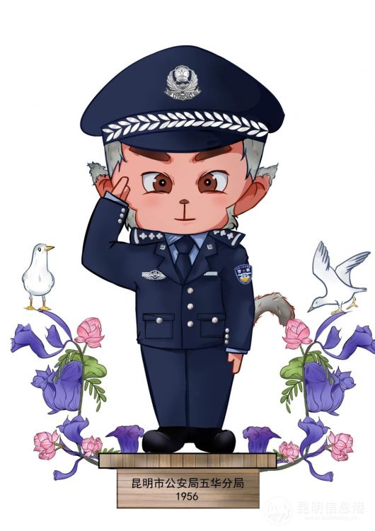 日前,昆明市公安局五華分局征求的分局卡通吉祥物形象從各部門報送的作品中挑選出5件作品首次亮相。