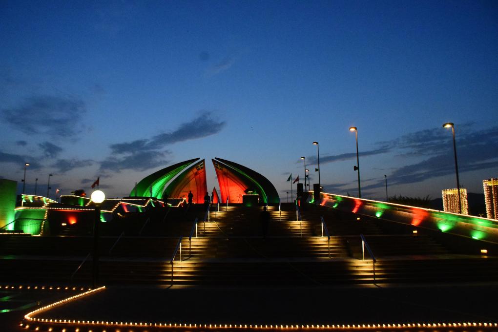 這是7月29日在巴基斯坦首都伊斯蘭堡拍攝的亮燈的巴基斯坦紀念碑。近日,巴基斯坦首都伊斯蘭堡地標建筑亮起中巴兩國國旗顏色燈光,慶祝中巴經濟走廊啟動十周年。新華社發(fā)