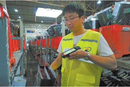 清晨6點半,昆明國際花卉拍賣交易中心已是一片忙碌景象。一輛輛滿載鮮切花的小車穿梭場內(nèi),一個個身著綠色馬甲的質(zhì)檢員在小車旁駐留,熟練地完成觀察、掃碼、填單等一系列動作。至此,每一朵鮮花便有了“身份證”,供貨商、品級、成熟度、優(yōu)勢、瑕疵等“身份信息”隨即出現(xiàn)在電子拍賣交易大鐘上,進入拍賣環(huán)節(jié)。