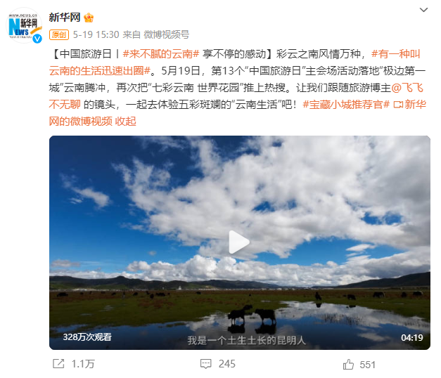 借勢“有一種叫云南的生活”的傳播熱度,云南自媒體、網(wǎng)絡(luò)大V、網(wǎng)友化身云南旅游“推薦官”,通過直播、短視頻、圖片等形式“花式”宣傳推介云南自然生態(tài)美景、民族風(fēng)情、非遺文化、生物多樣性等內(nèi)容,真誠邀請各地游客到云南旅游?!坝幸环N叫云南的生活”影響力持續(xù)放大,把云南旅游推向了新高度,成為廣大網(wǎng)友向往的“詩和遠(yuǎn)方”。