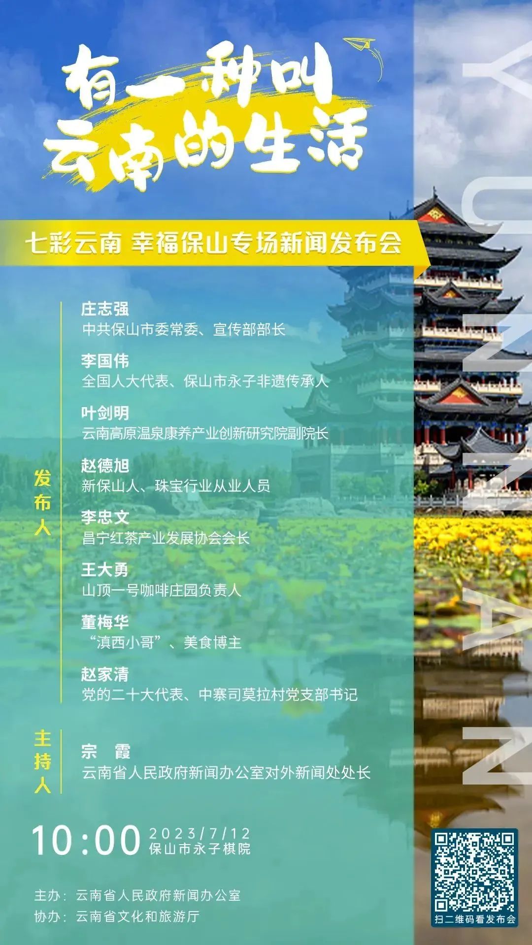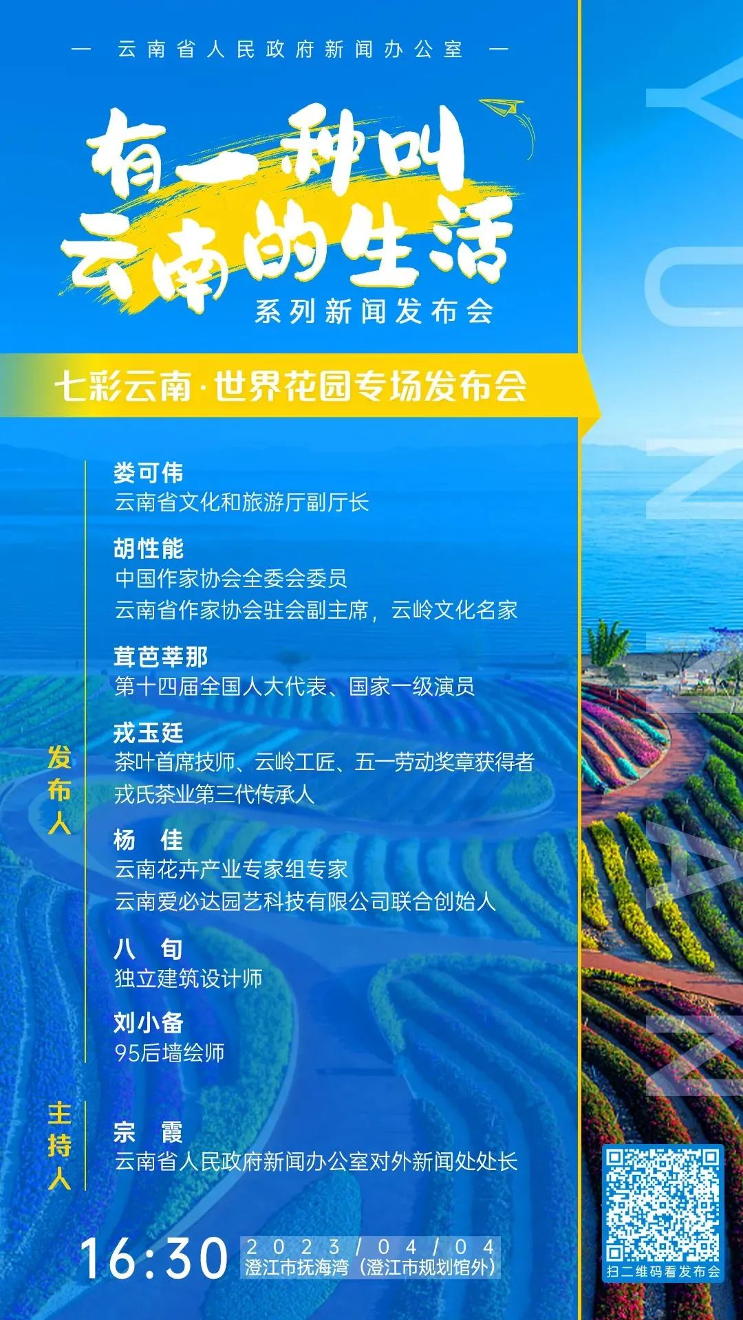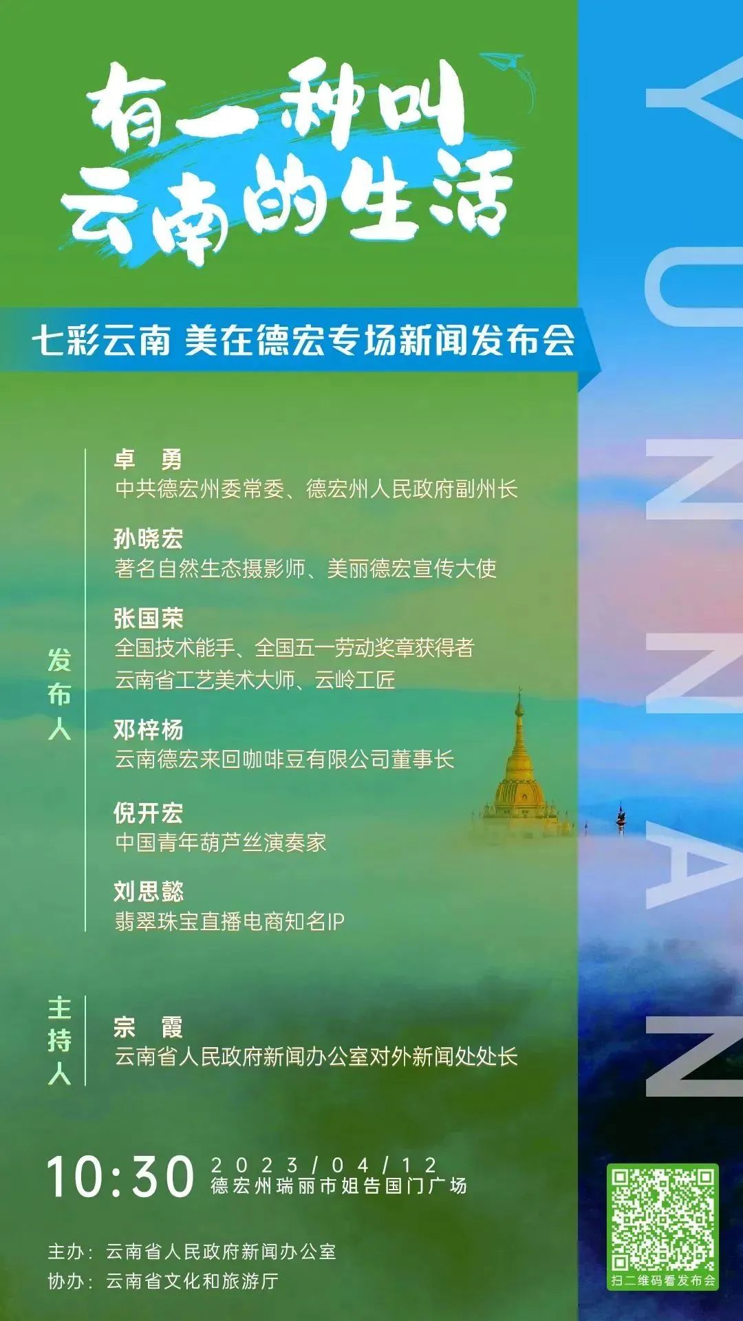 4月起,云南省人民政府新聞辦公室召開“有一種叫云南的生活”系列新聞發(fā)布會,將發(fā)布會搬到了云南的山水之間,邀請云南各領(lǐng)域、各行業(yè)的嘉賓代表分享云南的山水、云南的旋律、云南的色彩,通過17場別開生面的新聞發(fā)布會,帶廣大網(wǎng)友“沉浸式”體驗“有一種叫云南的生活”,進(jìn)一步向全國乃至世界推介“七彩云南 世界花園”。