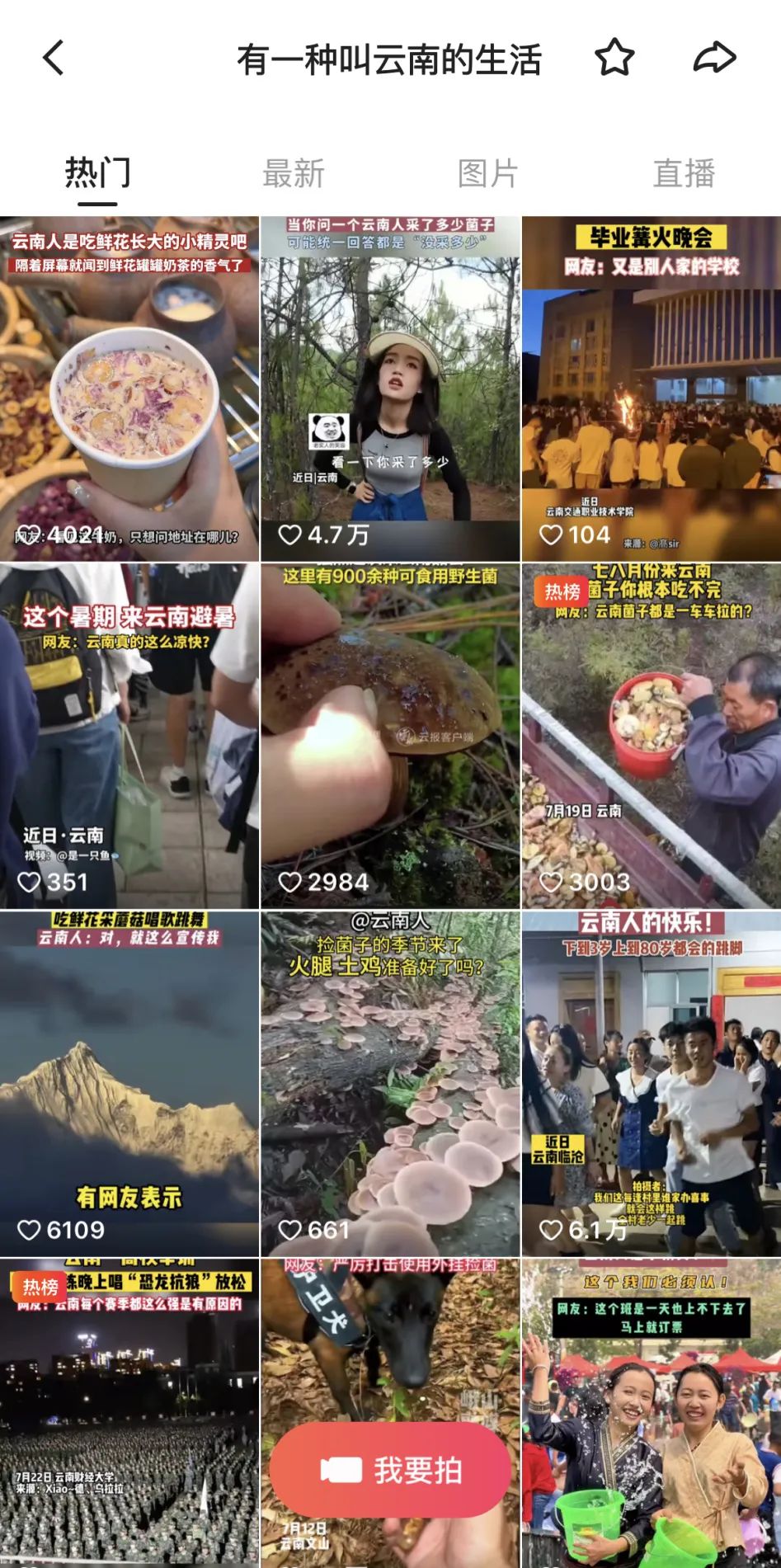 云報客戶端運用圖片、海報、短視頻等形式策劃多組原創(chuàng)報道全方位、多視角展示云南獨有的“限定版”驚喜,同時發(fā)起“有一種叫云南的生活”短視頻征集展播及網(wǎng)絡(luò)互動活動,在全網(wǎng)掀起為家鄉(xiāng)代言打CALL的熱潮。