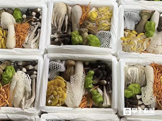 商戶張曉晨正在打包一份寄往江蘇的“菌子寶箱”,除了青頭菌和牛肝菌,打包盒里還有大蒜、青椒和一袋火腿片。張曉晨做野生菌批發(fā)生意五年多,外省郵購、網購野生菌已經成了近年來的熱門銷路。今年多加了配料服務,生意好的時候,有時候一天需要郵寄50多單快遞。“外省顧客購買野生菌后會詢問我做法,有的也會讓我?guī)兔I配料。一個老顧客建議,青椒和大蒜價格不貴,不如免費放在打包盒里贈送,讓他們品嘗美味的同時,也能感受到云南人民的熱情和周到的服務?!蹦壳?,市場內部分商戶針對寄往省外的“菌子寶箱”里也基本都贈送了配料。