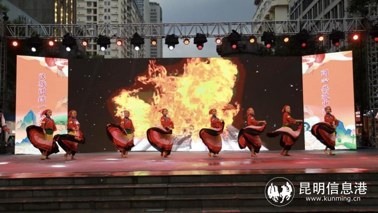 昆明信息港訊 記者盧芝珍 火紅八月,同火狂歡。8月10日晚,由昆明市五華區(qū)護(hù)國街道主辦的“護(hù)星暖心 國夢共筑”火紅時代2023年火把節(jié)活動在南屏步行街拉開序幕,來自全國各地的各族同胞相聚昆明市中心,共同點燃象征著民族團(tuán)結(jié)的火把,載歌載舞慶?;鸢压?jié)。