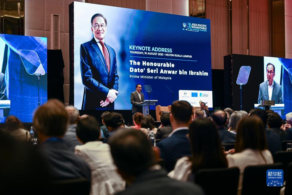 8月10日,馬來西亞總理安瓦爾(中)在吉隆坡出席第36屆亞太圓桌論壇。新華社記者 程一恒 攝