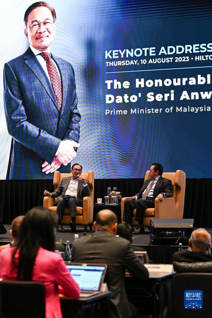 8月10日,馬來西亞總理安瓦爾(左)在吉隆坡出席第36屆亞太圓桌論壇。新華社記者 程一恒 攝