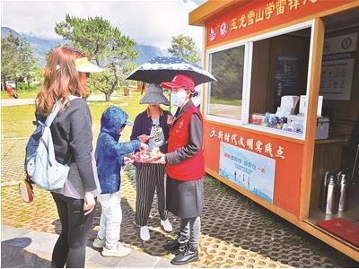 玉龍雪山景區(qū)周到服務引領暑期文明旅游。 (本報記者 李映芳 攝)