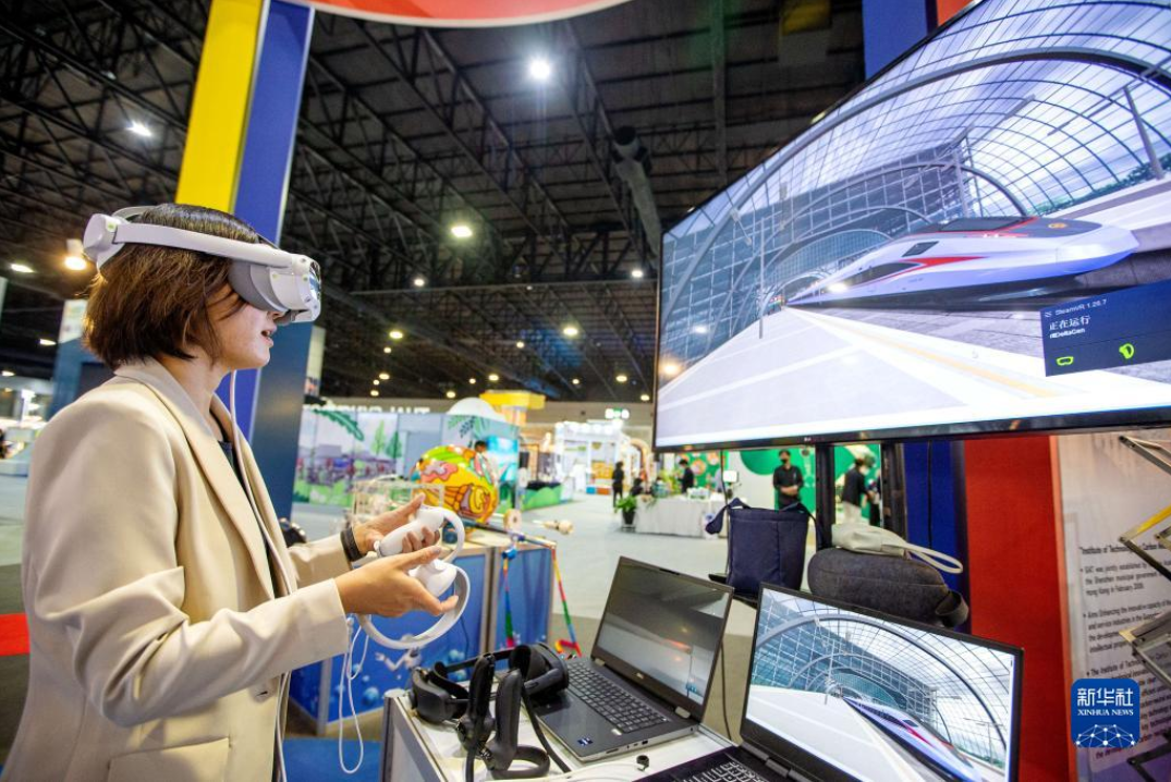 8月11日,在泰國曼谷舉辦的泰國國家科學技術(shù)展上,一名女子在中國館體驗虛擬交互系統(tǒng)。