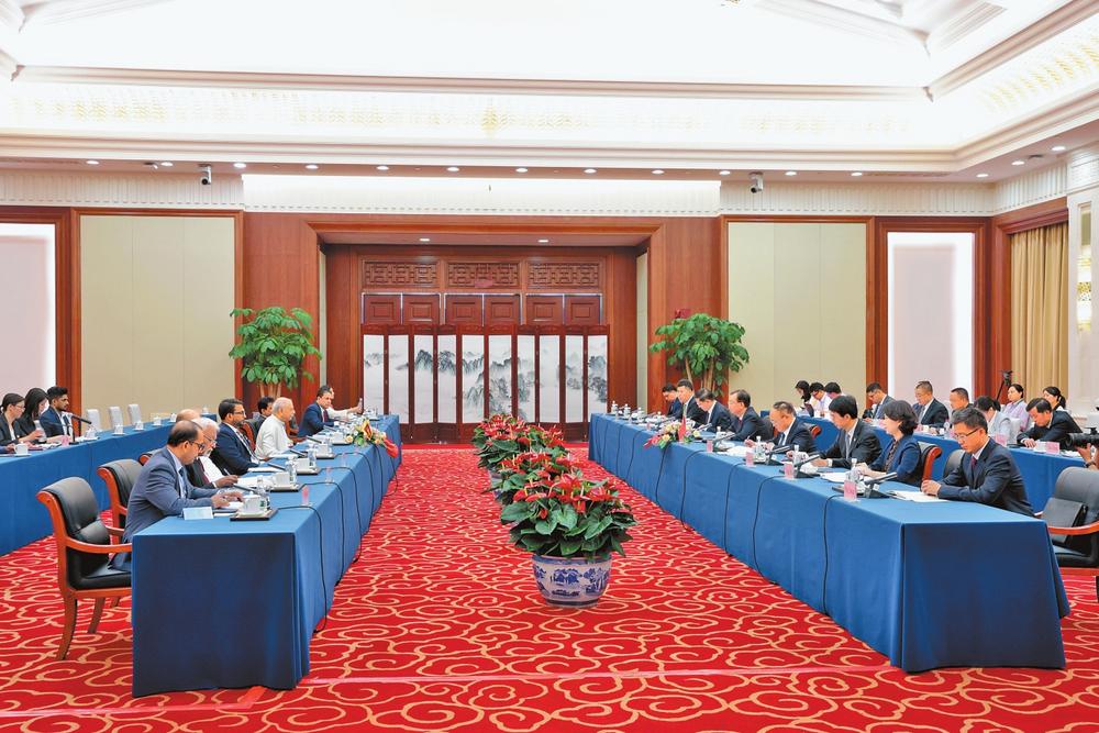 王寧、王予波對(duì)迪內(nèi)什·古納瓦德納一行表示熱烈歡迎,介紹了近年來(lái)云南積極服務(wù)和融入“一帶一路”建設(shè)情況和云南省情及減貧事業(yè)。王寧說(shuō),中斯交往歷史悠久,兩國(guó)人民之間有著深厚友情。兩國(guó)建交以來(lái),始終相互尊重、團(tuán)結(jié)互助,在涉及彼此核心利益的問(wèn)題上相互支持,中斯關(guān)系成為大小國(guó)家友好相處、互利合作的典范。2022年,習(xí)近平主席向中斯政黨慶祝中斯建交65周年暨《米膠協(xié)定》簽署70周年大會(huì)致賀信,充分表明習(xí)近平主席對(duì)中斯兩國(guó)友好合作關(guān)系的高度重視。近年來(lái),在兩國(guó)元首的戰(zhàn)略引領(lǐng)和推動(dòng)下,兩國(guó)關(guān)系穩(wěn)步發(fā)展,共建“一帶一路”重點(diǎn)項(xiàng)目積極推進(jìn)。滇斯雙方在經(jīng)貿(mào)、人文等領(lǐng)域合作不斷邁上新臺(tái)階,今年上半年,云南省政府代表團(tuán)赴斯訪問(wèn),達(dá)成一系列合作共識(shí),云南向斯方捐贈(zèng)緊缺生活物資,派出醫(yī)療隊(duì)赴科倫坡幫助118名白內(nèi)障患者重見(jiàn)光明,滇斯傳統(tǒng)友誼不斷傳承深化。