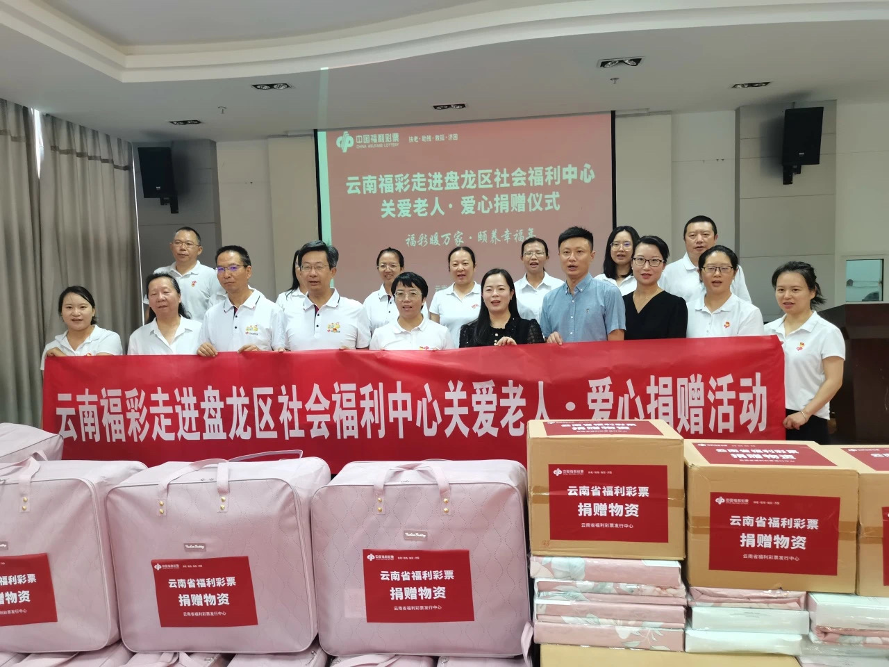 昆明信息港訊 8月15日上午,云南省福利彩票發(fā)行中心黨支部走進昆明市盤龍區(qū)社會福利中心,開展“福彩暖萬家?頤養(yǎng)幸福年”主題黨日暨捐贈慰問活動。省福彩中心領導、部分黨員及盤龍區(qū)民政局領導、盤龍區(qū)社會福利中心工作人員參加活動。