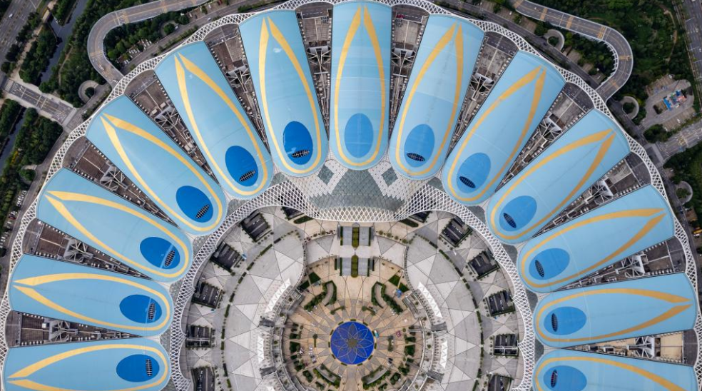 這是8月7日拍攝的第七屆中國(guó)—南亞博覽會(huì)舉辦地昆明滇池國(guó)際會(huì)展中心(無(wú)人機(jī)照片)。新華社記者陳欣波攝