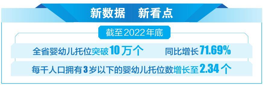 記者近日從省發(fā)展改革委獲悉,我省持續(xù)加快托育服務(wù)體系建設(shè),大力發(fā)展嬰幼兒照護(hù)服務(wù),截至2022年底,全省嬰幼兒托位已突破10萬(wàn)個(gè),同比增長(zhǎng)71.69%,每千人口擁有3歲以下的嬰幼兒托位數(shù)增長(zhǎng)至2.34個(gè),數(shù)量規(guī)模、質(zhì)量標(biāo)準(zhǔn)實(shí)現(xiàn)雙增長(zhǎng)雙提升。