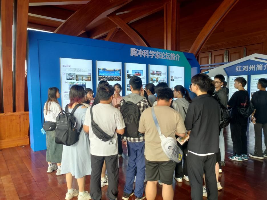 本次論壇還開設(shè)了展覽展示區(qū),騰沖科學(xué)家論壇展板被設(shè)置于論壇入口醒目位置,展板內(nèi)容結(jié)合論壇緣起、回顧2022、展望2023等向與會人員進(jìn)行了詳盡介紹,吸引了眾多人駐足圍觀。