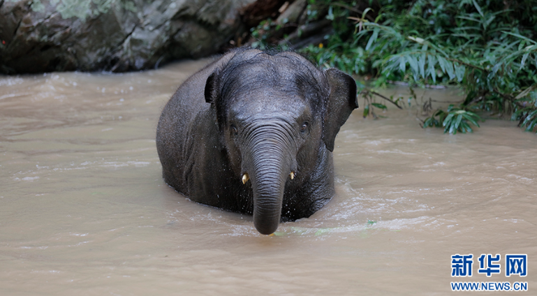 小象“龍龍”在溪水里玩耍(7月16日攝)。新華網(wǎng) 徐華陵 攝