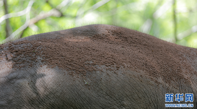 特寫視角下,亞洲象的身上有許多細(xì)小的毛發(fā)在保護(hù)它們的身體(7月17日攝)。新華網(wǎng) 徐華陵 攝