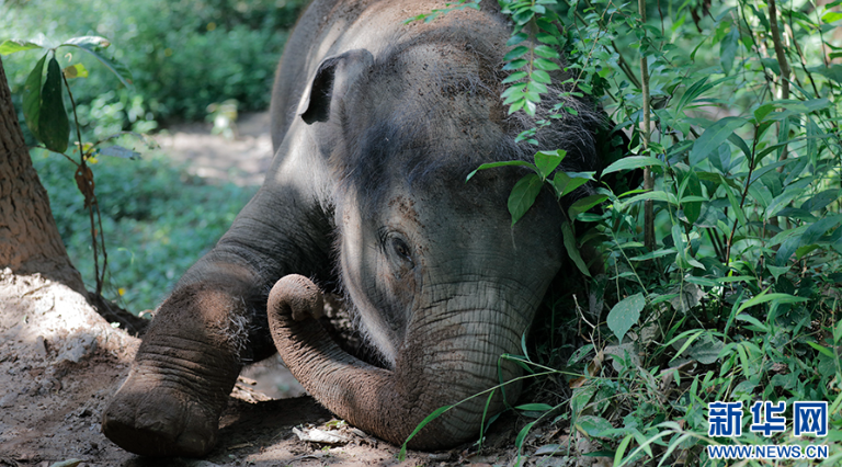 小象“龍龍”在野外玩耍(7月17日攝)。新華網(wǎng) 徐華陵 攝