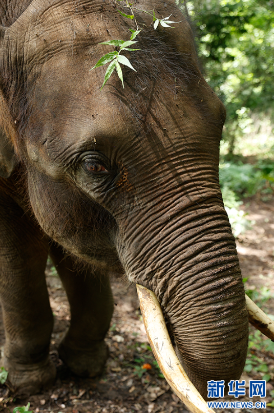 近距離觀察救助象“小強(qiáng)”,可以看到它臉部細(xì)小的毛發(fā)(7月16日攝)。新華網(wǎng) 劉云 攝