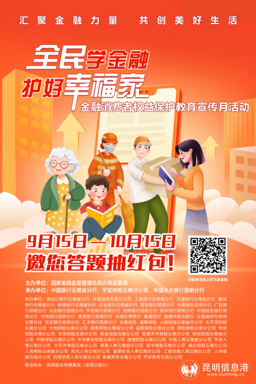 昆明信息港訊 記者周智宇 9月15日,由國家金融監(jiān)督管理總局云南監(jiān)管局主辦,中國銀行云南省分行、中國光大銀行昆明分行和平安財險云南分公司協(xié)同53家云南省銀行保險機(jī)構(gòu)共同組織的“全民學(xué)金融 護(hù)好幸福家”金融消費者權(quán)益保護(hù)教育宣傳月活動正式啟動。當(dāng)天,線上金融知識答題正式上線,面向全民開展。