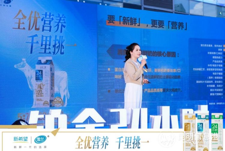 昆明信息港訊 記者張俊 9月16日,新希望雪蘭牛奶第十屆鮮奶節(jié)在同德昆明廣場(chǎng)啟幕。本次盛典現(xiàn)場(chǎng),新希望雪蘭牛奶發(fā)布了全新的24小時(shí)鮮牛乳高端系列產(chǎn)品—鉑金24小時(shí)優(yōu)質(zhì)乳。該款鉑金24小時(shí)優(yōu)質(zhì)乳以“20倍免疫球蛋白、3.8g/100g優(yōu)質(zhì)乳蛋白、5種活性營(yíng)養(yǎng)+7種微量營(yíng)養(yǎng)素”的鉑金營(yíng)養(yǎng)指標(biāo),再次刷新了云南鮮奶“鮮活營(yíng)養(yǎng)”價(jià)值標(biāo)桿。