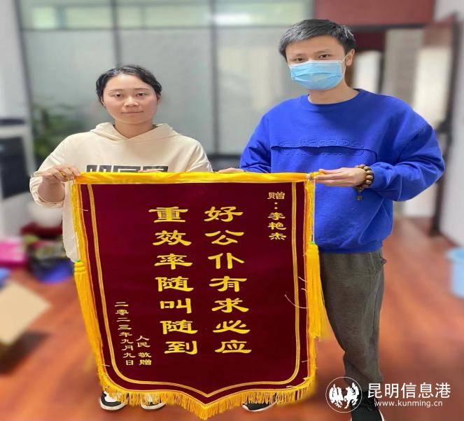 “李艷杰同志在工作中熱情專業(yè),有問必答,為民解憂,服務(wù)態(tài)度非常好,對此深表感謝?!?月13日下午,市民劉先生將一面印有“好公仆有求必應(yīng),重效率隨叫隨到”的錦旗送到了云南滇中新區(qū)社會事務(wù)管理局李艷杰同志的手中。