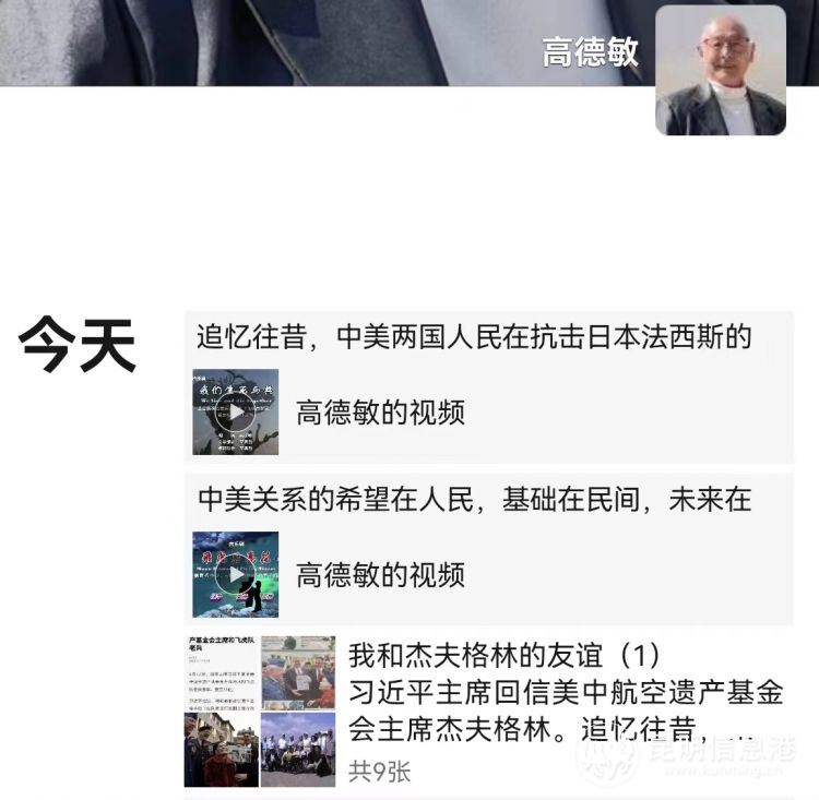 19日一天之內(nèi),高德敏朋友圈連發(fā)了三條內(nèi)容,都是在分享習近平主席復信飛虎隊一事給他帶來的感受和對中美友誼的追憶。