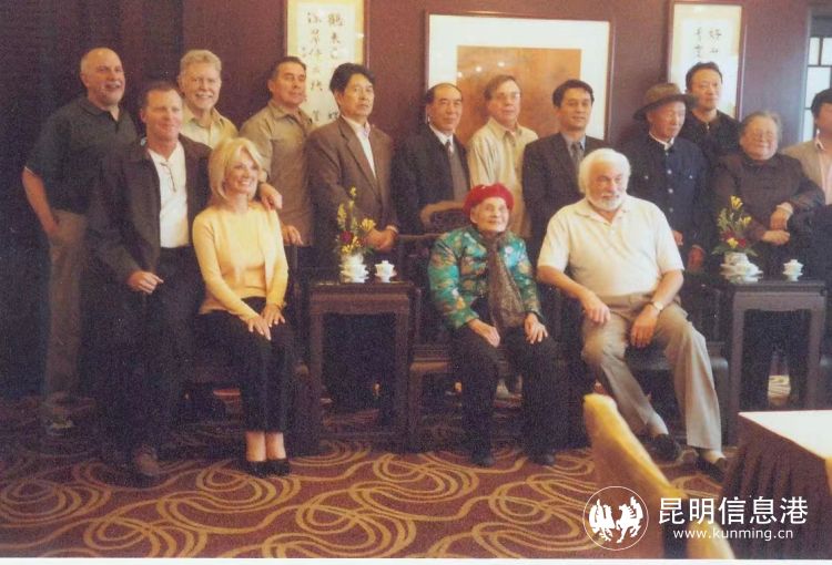 2004年在昆明原飛虎隊招待所舉辦的活動中,杰夫格林、美國大使館文化參贊裴孝賢,飛虎老兵邦德等與高德敏母親黃歡笑合影。受訪者提供