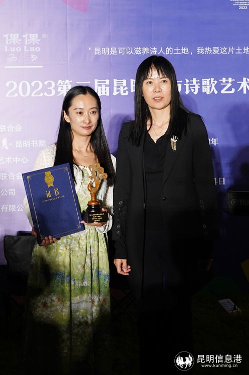 昆明作家協(xié)會(huì)名譽(yù)主席張慶國和著名詩人吉木狼格分別為二等獎(jiǎng)獲獎(jiǎng)詩人謝竺軒和字童頒發(fā)獲獎(jiǎng)證書,著名詩人何小竹、昆明作家協(xié)會(huì)副主席兼秘書長李曉松、樹影藝術(shù)中心策劃經(jīng)理牛牧分別為三等獎(jiǎng)獲獎(jiǎng)詩人劉銳、楊不寒和李昀璐頒發(fā)獲獎(jiǎng)證書。
