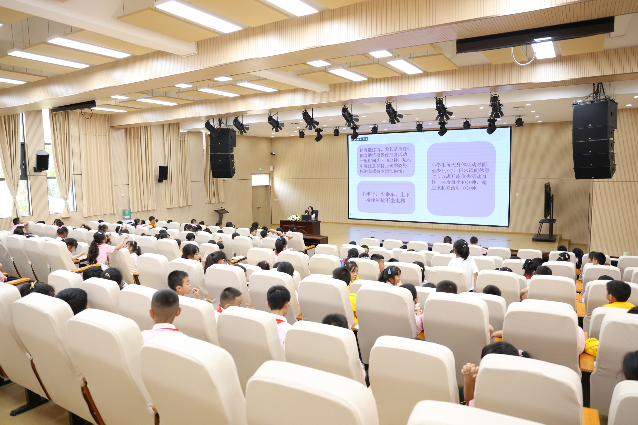 科學(xué)的體育鍛煉是促進(jìn)兒童青少年全面發(fā)展的重要方式。講座伊始,陶曉黎老師用提問的方式引導(dǎo)同學(xué)們思考如何養(yǎng)成健康的生活方式,用一個(gè)個(gè)生動(dòng)的案例深入淺出地向大家普及了如何形成科學(xué)的運(yùn)動(dòng)習(xí)慣、合理的膳食行為、良好的起居規(guī)律等知識,最后倡導(dǎo)同學(xué)們在身體成長的黃金期自主選擇鍛煉項(xiàng)目,自覺進(jìn)行體育鍛煉,著眼于提升身體素質(zhì),養(yǎng)成終身運(yùn)動(dòng)的好習(xí)慣。近一個(gè)小時(shí)的講座,同學(xué)們絲毫未覺枯燥乏味,反而沉浸在體育知識的氛圍中。