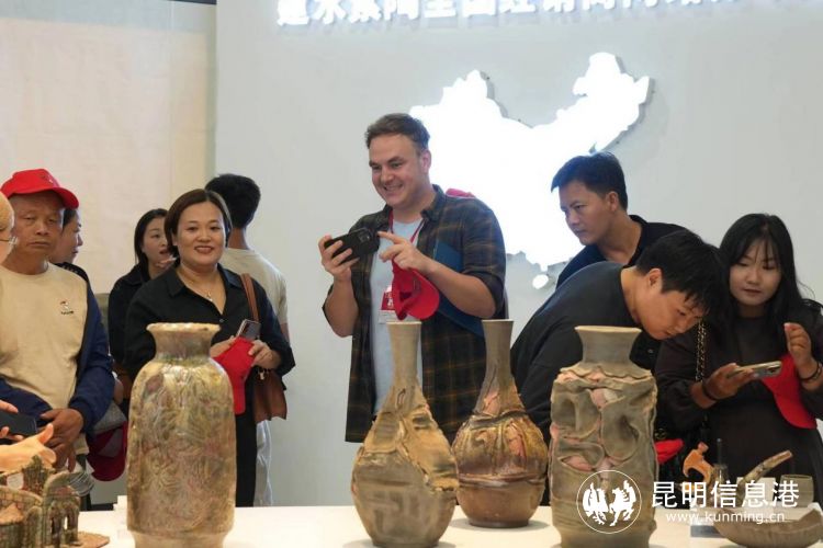 開(kāi)幕式現(xiàn)場(chǎng),建水當(dāng)?shù)靥厣栉?、漢服巡游、紫陶茶藝、紫陶秀、大師現(xiàn)場(chǎng)拉坯等建水元素吸引不少游客拍攝打卡。游客們穿梭于各具特色的展區(qū)間,為精美別致的建水紫陶駐足,在美食展區(qū)品味地道的建水美食,更深入體驗(yàn)區(qū)域親手制作相關(guān)工藝品。