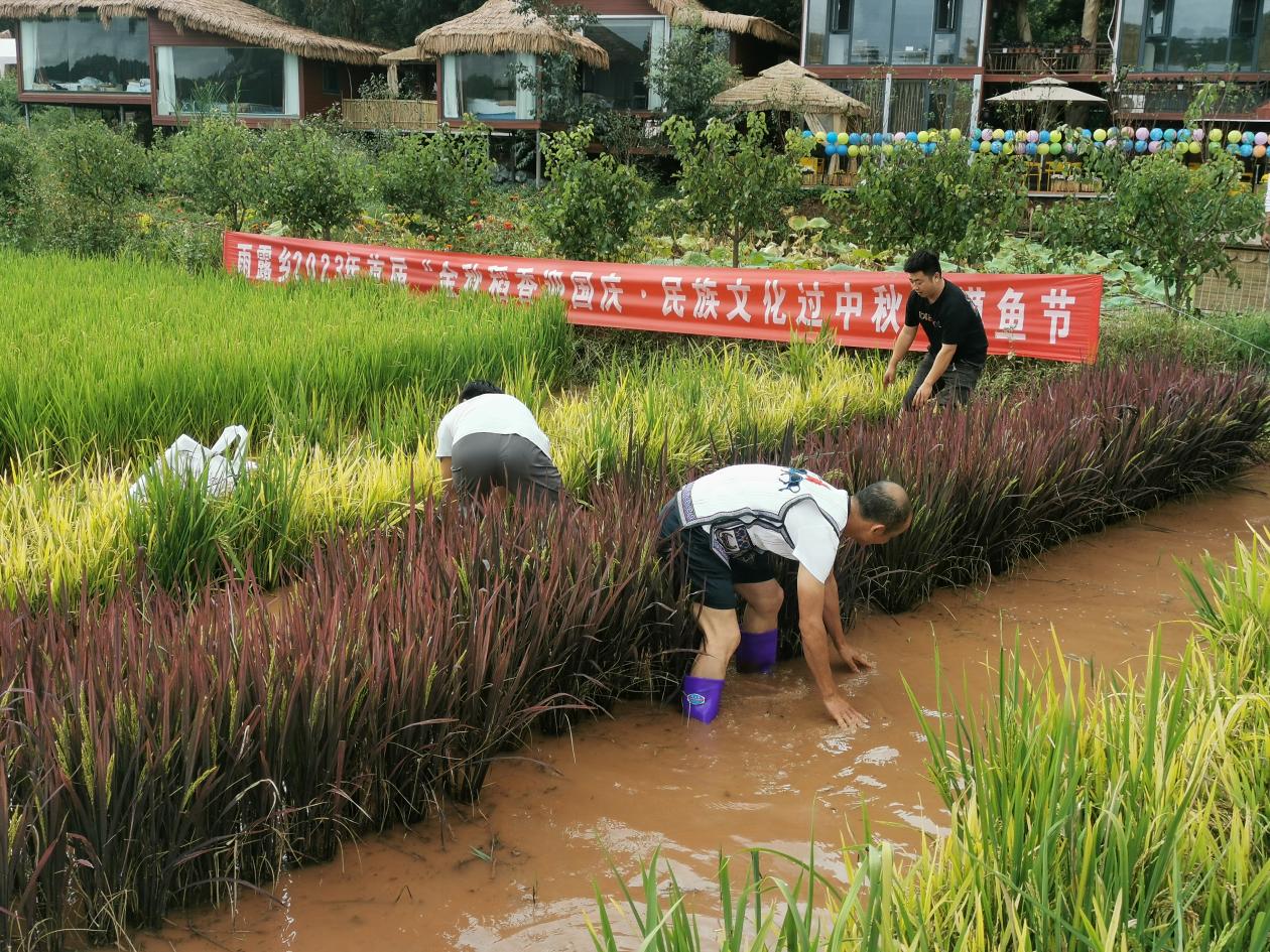 昆明信息港訊 29日,以“金秋稻香迎國慶 民族文化過中秋”為主題的雨露鄉(xiāng)首屆摸魚節(jié)在阿呀嚕田園農(nóng)莊和羅文稻花魚養(yǎng)殖基地成功舉辦。