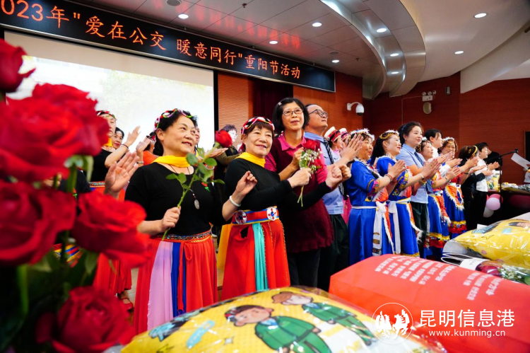 參觀過后,昆明公交組織老年粉絲乘客舉辦重陽節(jié)聯(lián)歡會。昆明公交青年駕駛員代表宣讀重陽節(jié)倡議書,講述了公交的暖心故事。在互動環(huán)節(jié)中,老年乘客對特色專線建言獻(xiàn)策。接著,老年粉絲乘客們用質(zhì)樸嘹亮的歌聲和款款輕盈的舞姿,表達(dá)了樂享新時代美好幸福生活的喜悅心情。昆明公交為老年乘客們送上了鮮花和禮物以示祝福。