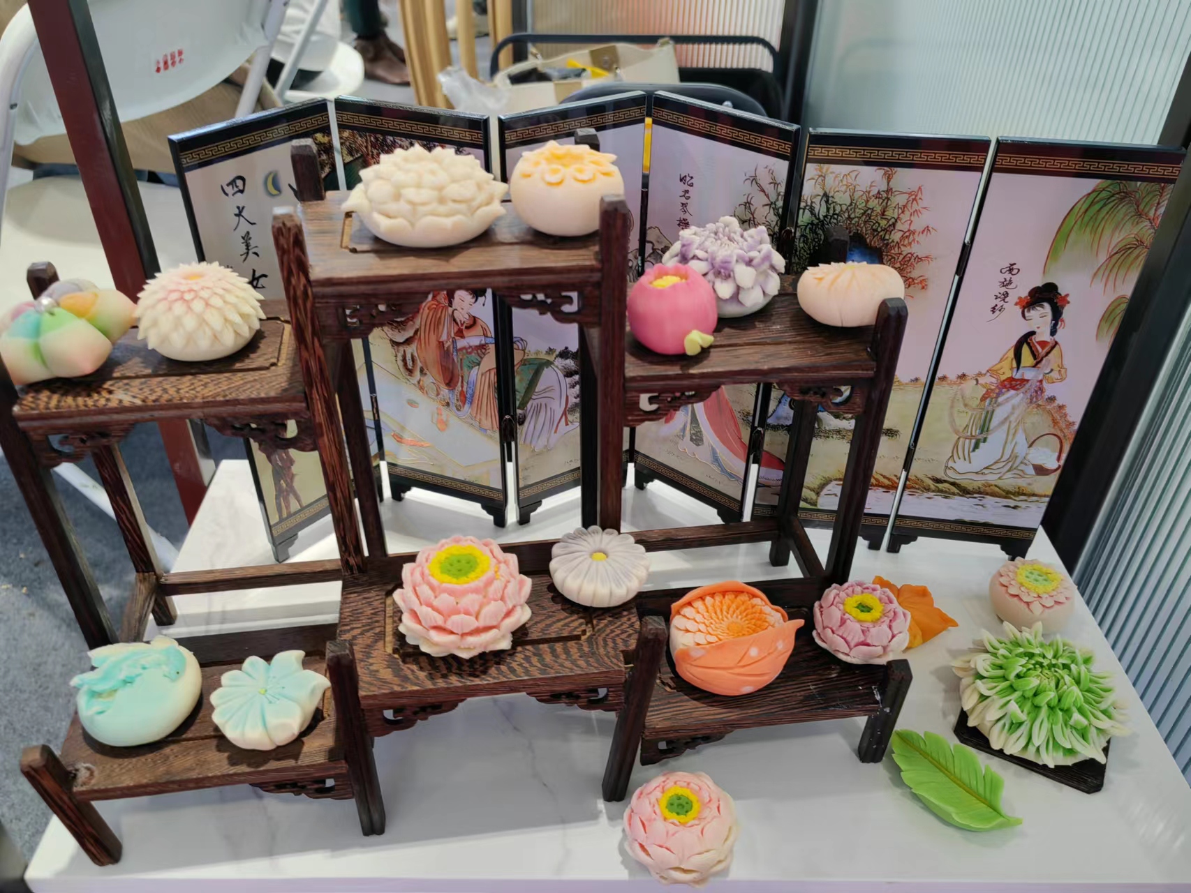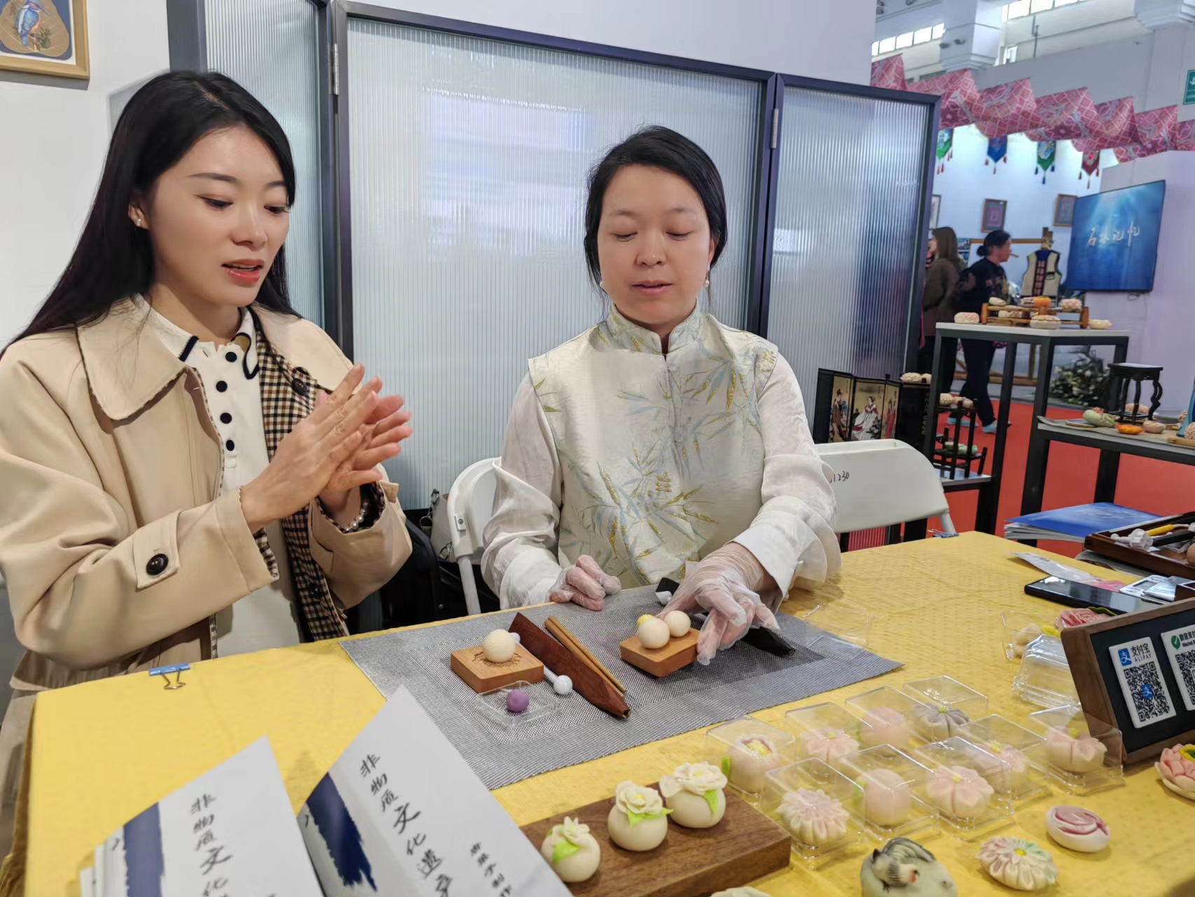 “以唐菓子傳統(tǒng)手藝人的身份來參展感到非常榮幸和激動。”談及參加此次文博會的感受,喬媛媛表示,文博會聚集了來自國內(nèi)、省內(nèi)各州市以及昆明各區(qū)縣的各類非遺技藝和產(chǎn)品,可以認識到很多優(yōu)秀的非遺技藝傳承人和手工藝者,為后面的創(chuàng)作提供更多更廣的思路。說到唐菓子與云南元素的融合創(chuàng)新時,喬媛媛說:“為了展現(xiàn)云南文化,突出云南特色,我們在唐菓子的口味方面融入了普洱茶、鮮花、酸角、百香果等具有云南地域特色的食材,制作出了獨具昆滇特色的唐菓子?!?/p>