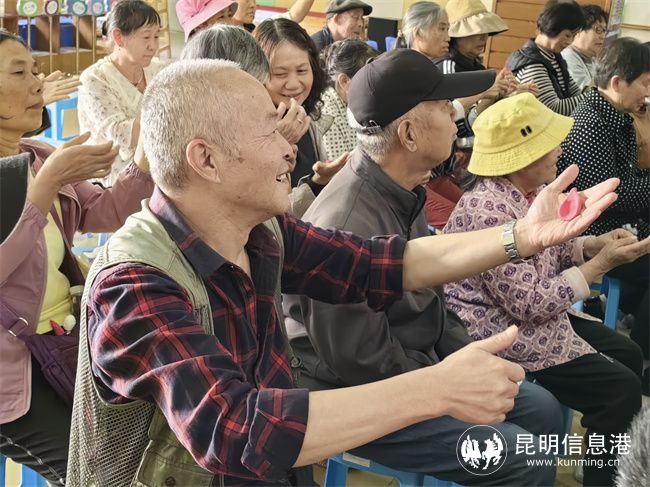 在“愛的表達(dá)”中,幼兒園退休教職工以及各班幼兒的爺爺奶奶們來到幼兒園共享天倫、共度重陽??吹釀 ⒆雒倒寤?、吃重陽糕、看幼兒節(jié)目、贈(zèng)壽桃……尤其是幼兒園特邀席子營社區(qū)滇劇表演藝術(shù)團(tuán)的滇劇演員,為爺爺奶奶帶來了云南傳統(tǒng)戲曲——滇劇,讓大家領(lǐng)略到了云南滇劇藝術(shù)的文化魅力。