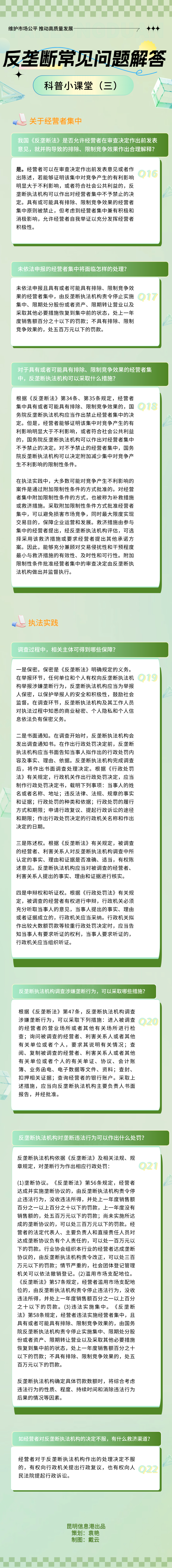 緊緊圍繞“統(tǒng)一大市場 公平競未來”主題,昆明信息港推出“反壟斷”常見問題解答系列海報長圖,現(xiàn)展示反壟斷常見問題解答(三):