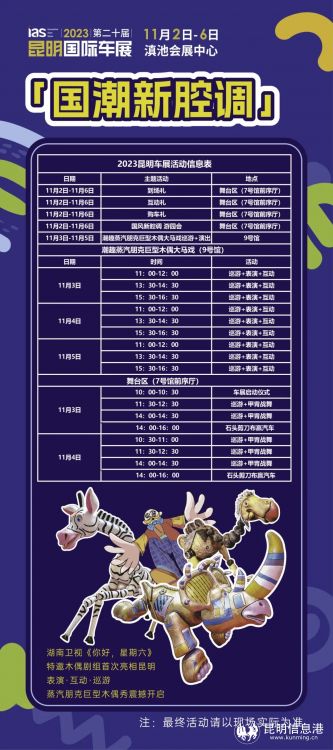 春城無冬,暖意正濃。昆明國際車展領(lǐng)銜西南車展風(fēng)潮,已成為展示西南地區(qū)車市的一張靚麗名片。這個十一月,精彩國潮活動與年度優(yōu)惠多項疊加,為參展觀眾營造出“美好生活”的價值新體驗。11月2日-6日,相約滇池國際會展中心,一起享受這場年度汽車盛宴!(昆明信息港 記者昝娟娟)