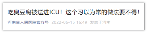 河南一女士吃自制臭豆腐肉毒素中毒 被送進(jìn)ICU