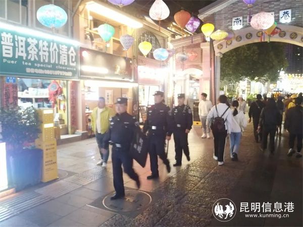 五華公安最大限度把警力擺上街面,落實“見警察、見警燈、見警車”行動,嚴格執(zhí)行快速反應機制,在廣場公園、繁華街道和夜市等人員密集區(qū)域開展巡邏防控,給群眾看得見的安全感。