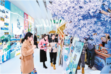 拿著收到的玫瑰、月季、繡球,和山茶花打卡墻、藍花楹主題造景合個影,逛逛瓦貓博物館、講武文創(chuàng),打卡演藝海報墻,然后駐足閑坐,嘗嘗來自滇池邊小漁村的堅果、紅糖……在本屆旅交會昆明文旅展區(qū)里走一走,就能一站式感受昆明的都市時尚生活、環(huán)滇池健康生態(tài)生活和老昆明慢生活。