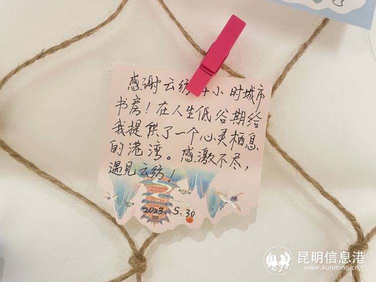 “感謝云紡24小時(shí)城市書房,在人生低谷期給我提供了一個(gè)心靈棲息的港灣?!边@句話是一名讀者在云紡24小時(shí)城市書房里的留言。在這里,密密麻麻的彩色便利貼幾乎快貼滿了留言板。