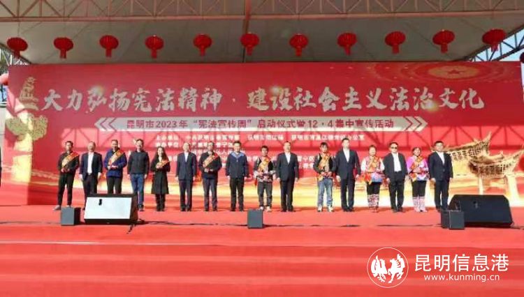 昆明信息港訊 記者周智宇 12月4日,在第十個(gè)“國(guó)家憲法日”到來(lái)之際,昆明市2023年“憲法宣傳周”系列宣傳活動(dòng)啟動(dòng)儀式在晉寧區(qū)鄭和廣場(chǎng)舉行。昆明市五華區(qū)、盤(pán)龍區(qū)、西山區(qū)等縣(市)區(qū)也于當(dāng)日在南屏步行街、商業(yè)區(qū)等地同步開(kāi)展主題宣傳和燈光秀等活動(dòng)。