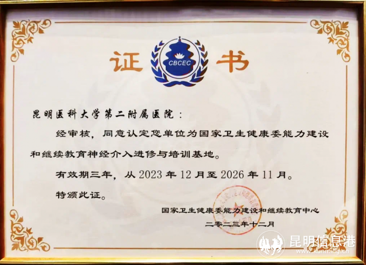 昆醫(yī)大附二院腦血管病科團隊經(jīng)過三年的不懈努力,歷經(jīng)“國家衛(wèi)生健康委能力建設(shè)和繼續(xù)教育中心”嚴格評審和公示,成為“國家衛(wèi)生健康委能力建設(shè)和繼續(xù)教育中心”授牌的云南省首家及唯一一家國家級神經(jīng)介入進修與培訓(xùn)基地。此次獲批國家衛(wèi)生健康委能力建設(shè)和繼續(xù)教育神經(jīng)介入進修與培訓(xùn)基地,既是對醫(yī)院及腦血管病科團隊長期以來神經(jīng)介入培訓(xùn)、技術(shù)推廣應(yīng)用工作的肯定,也是對進一步推進云南省神經(jīng)介入進修培訓(xùn)工作提出了更高的要求。