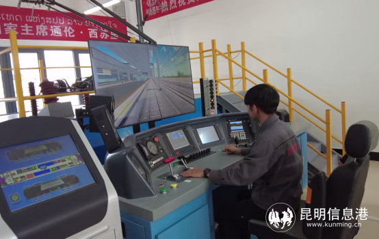 老撾鐵路教師陳樂(lè)陽(yáng)正在演示機(jī)車駕駛模擬操作